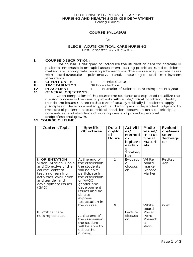 Course Syllabus PDF Nursing Intensive Care Medicine - View a full sample bsn curriculum plan. A minimum gpa of 2.7 is required by the end of the spring semester prior to starting clinical. Any time during the rn to bsn program. Course no courses credit hours 01 sc 611 biochemistry 2(1.5+ 0.5) 01 nu 621 *advance concepts in nursing (ii) mental health 04 (2+2) Discover how a bsn. You should also read this: St John's Golf Course Rates