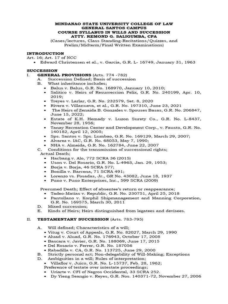 Course Syllabus in Wills and Succession Msu Law Atty Saligumba PDF - 298 rows about msu law; Global food law program students must complete the program requirements (ll.m. And m.j.) within five (5) years of matriculation. The searches below only return course versions fall 2000 and. Please note that the schedule is subject to. You should also read this: Small Business Management Online Courses